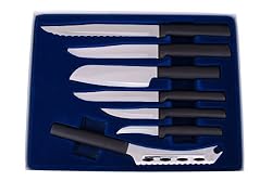 The items in this set will help to equip a kitchen with necessary cooking tools.Includes Cheese Knife, Granny Paring, Heavy Duty Paring, Utility/Steak, Cook's Utility, Stubby Butcher, Serrated Slicer. The perfect compliment to Rada's Starter Gift Set.Rada knives are super sharp, handcrafted in the USA, and carry a lifetime guarantee from the manufacturer against defects in materials or workmanship. Rada cutlery is made of surgical quality, high carbon stainless steel. Hollow-ground blades ensure a precision concave surface for maximum edge retention and sharpness. The black stainless steel resin handle is specifically designed to withstand the high temperatures and harsh detergent of the dishwasher.